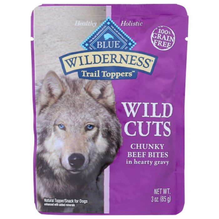 BLUE Wilderness Wild Cuts Trail Toppers are made to satisfy the spirit of the wolf that lives on in your dog. Add delicious bites of real beef steeped in irresistible gravy to your favorite BLUE dry foods or serve as a savory snack.