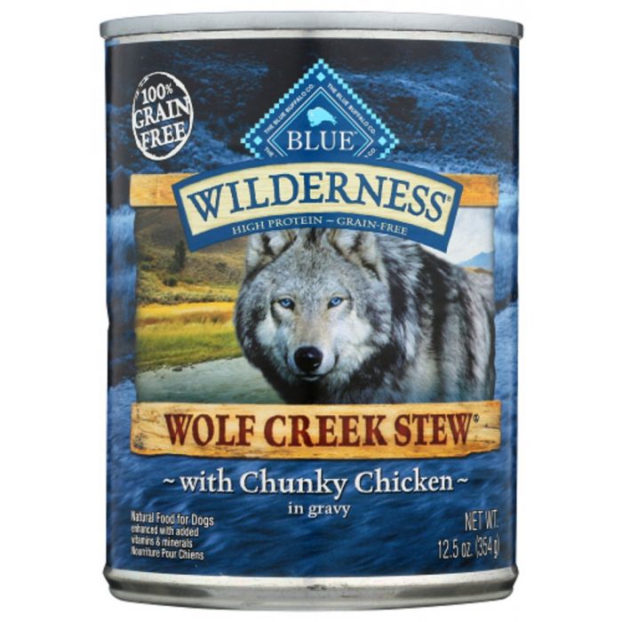 Inspired by the spirit of the open prairies in the American West where wolves roam freely, meat-rich BLUE Wilderness Wolf Creek Stew is a hearty, grain-free recipe with chunks of chicken that your dog craves and is steeped in a savory gravy for an irresistible flavor.