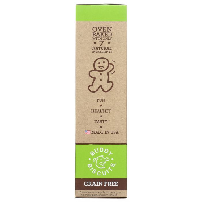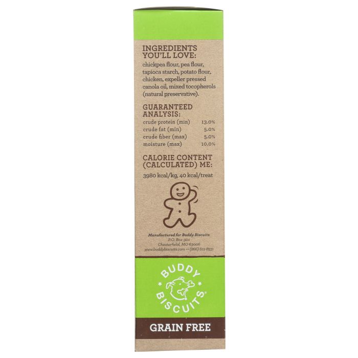 Discover the delight of BUDDY BISCUITS: Treat Baked Dog Roasted Chicken, available in a generous 14 oz package. Crafted with care, these treats are not only grain-free and gluten-free but also free from corn, yeast, sugar, salt, and soy. We believe in keeping it simple with healthy and tasty ingredients, ensuring that each bite is a wholesome delight. Shaped like fun ginger kids, these treats are designed to bring joy to dogs of all shapes and sizes, even those with allergies or sensitivities. Treat your furry friend to the best and watch them savor the flavor and shape that adds an extra layer of fun to snack time.