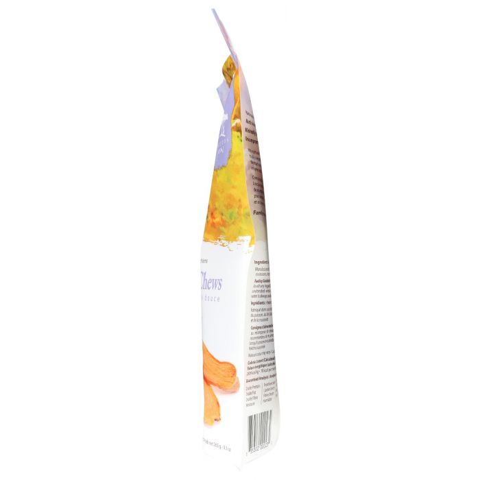The best sweet potato treats for your dog! Loved by pups for their taste, loved by pet parents, for their nutrition, our Sweet Potato Chews are a treat like no other. These vegan chews are made from 100% North Carolina sweet potato, containing no additives, artificial preservatives, or colors. Our production system dehydrates sweet potato and processes them by hand to ensure there are quality chews in every bag.They have a remarkable nutrition profile being rich in vitamin A and beta-carotene. Beta-carotene is a nutrient rarely found in dog food yet is essential for promoting a strong vision, while Vitamin A is a major contributor to a healthy immune system.