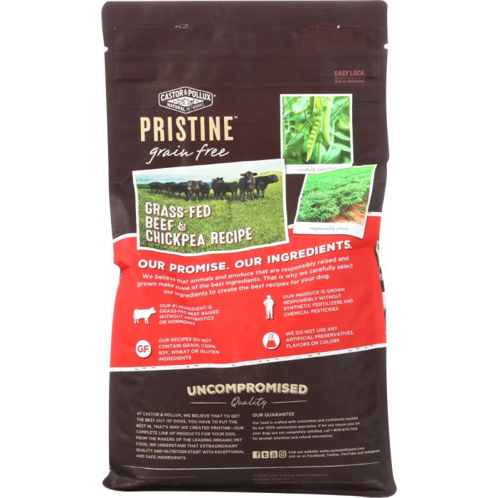 CASTOR & POLLUX: Pristine Grain Free Grass Fed Beef & Chickpea Recipe, 4 lb