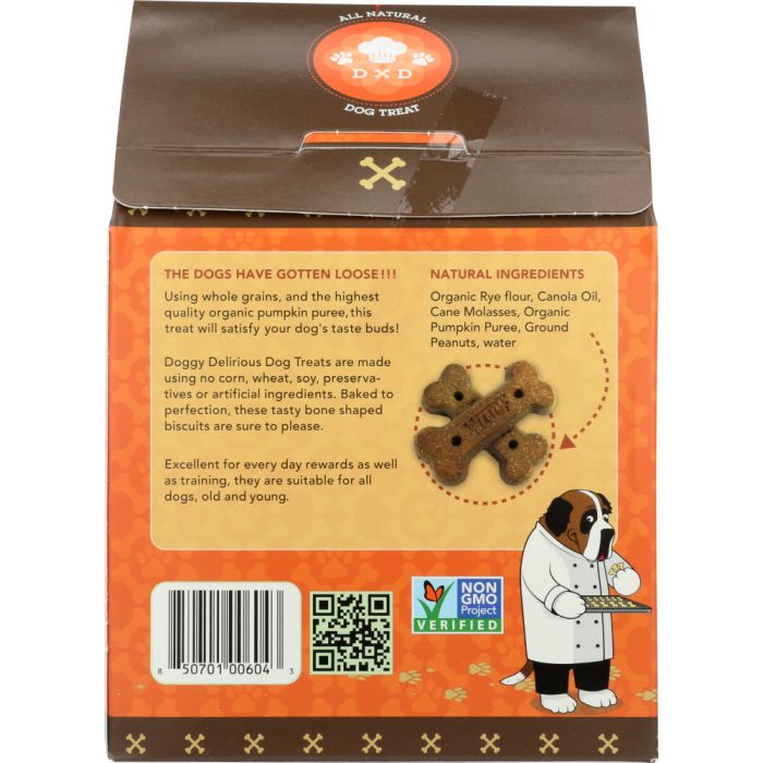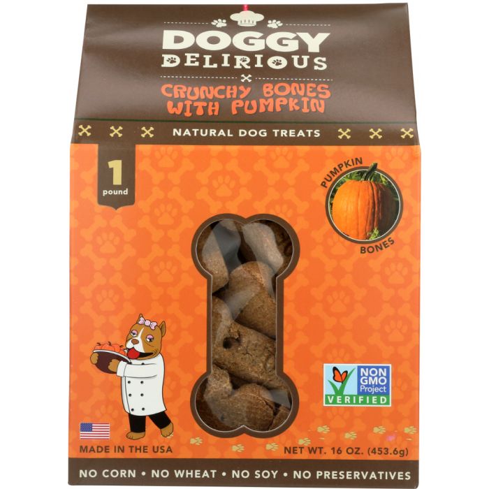 Introducing our DOGGY DELIRIOUS: Dog Bone Pumpkin, now available in a generous 16 oz package. We believe in offering your dog the very best, using the freshest produce, wholesome grains, and the highest quality organic pumpkins to create a treat that truly tantalizes their taste buds. Our Doggy Delirious Dog Treats are a labor of love, made without any trace of corn, wheat, soy, preservatives, or artificial ingredients. These delightful bone-shaped biscuits are baked to perfection, boasting a low-fat profile that still packs a flavorful punch. Ideal for everyday rewards and training, they cater to all dogs, whether they're old and wise or young and eager to learn. Give your furry companion the best with our DOGGY DELIRIOUS: Dog Bone Pumpkin, because they deserve nothing less. Watch them wag their tails with joy at each delicious bite.