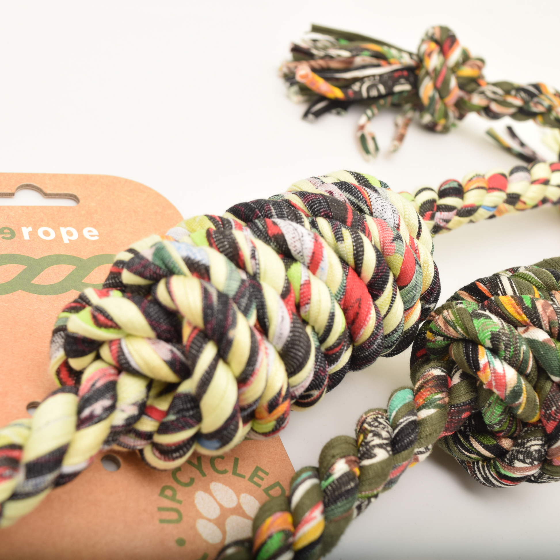 Reduce your furry footprint with ReRope sustainably-entwined pet products. ReRope eco-positive pet leashes transform up-cycled textile remnants into sustainably-entwined colorful rope creations.