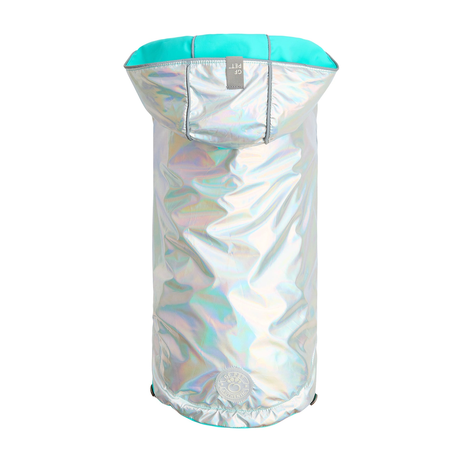 Say hello to the next generation in dog raincoats! The new exclusive GF PET Reversible Raincoat in Neon and Iridescent print is a unisex wardrobe staple and has everything! It features ELASTO-FIT Technology for a great fit; it is waterproof, reflective and reversible. Buttery soft, waterproof PVA on one side and luxurious, water-resistant polyester printed design on the other. Tackable hood can be worn up or down. Style and functionality combined!