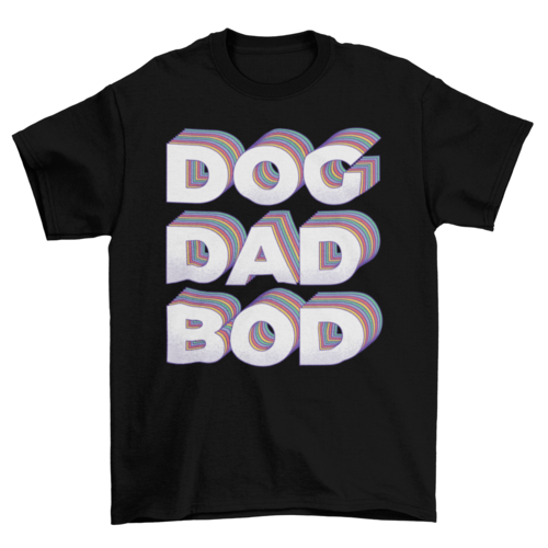 Cool statement t-shirt design featuring "Dog Dad Bod" lettering in multi layers.