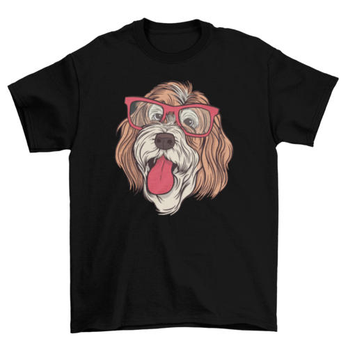 Awesome t-shirt design that includes an illustration of a Bernedoodle dog wearing glasses.