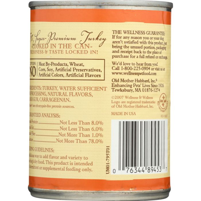 WELLNESS: Dog Food 95% Turkey, 13.2 oz